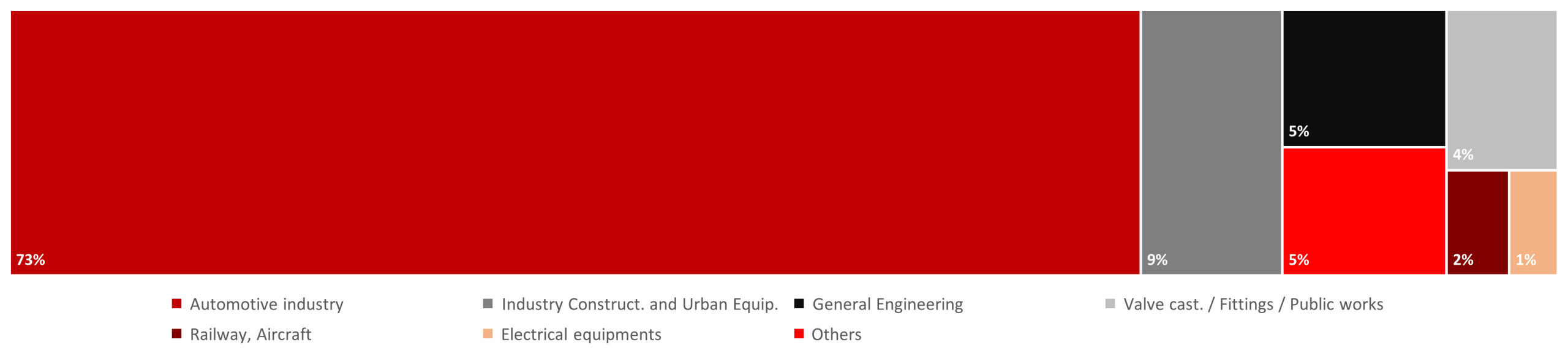 Sales in millions of euros € 609 millionsProductionThe APF groupsthe most representativefoundries.Responsible for Production Evolution Distribution by area